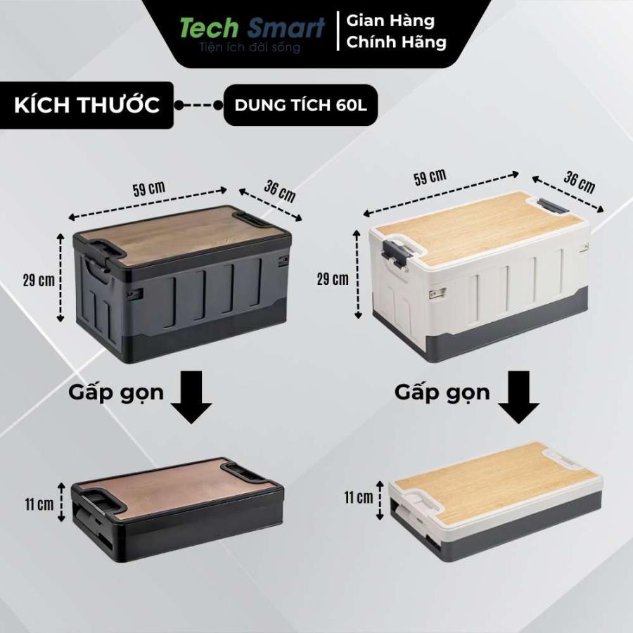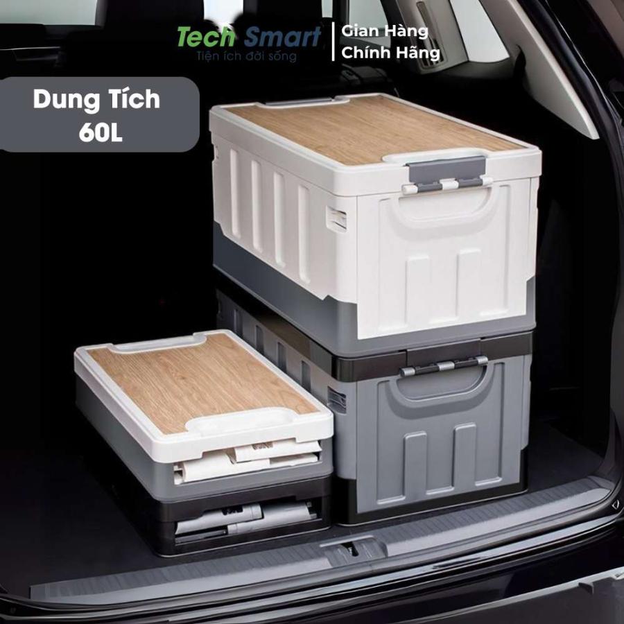 Thùng đựng đồ ô tô gấp gọn 60L bản cao cấp, dung tích lớn, nhựa PP bền chắc, nắp gỗ chịu lực, vừa đựng đồ vừa làm bàn, ghế, gấp gọn chỉ 11 cm tiện mang theo